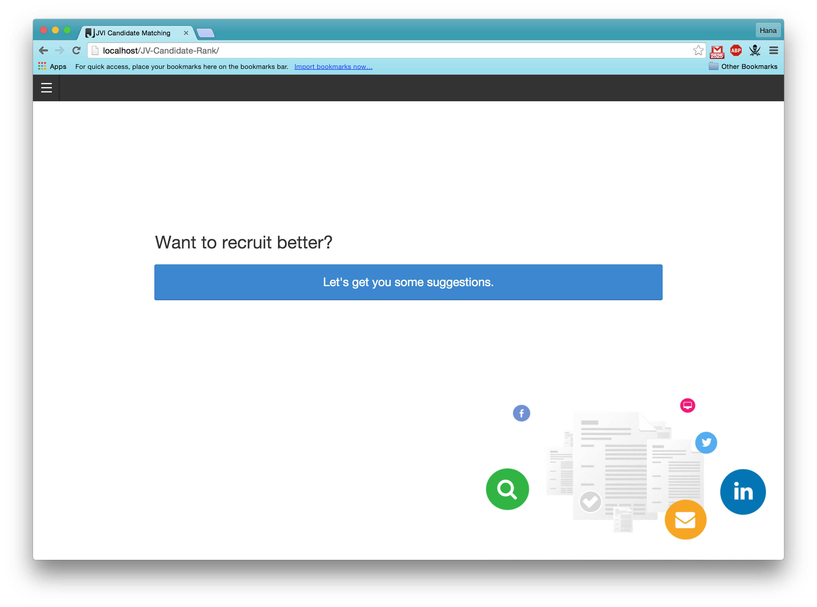 In the summer of 2015, I had the opportunity to develop a candidate ranking algorithm using big data, predictive analytics and machine learning. By the end of the internship I developed a web app that ranked and matched candidates for a given job description and presented it to the company.